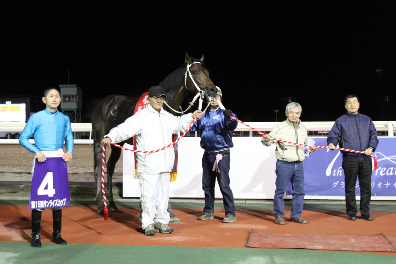 今年の「サンライズカップ」は10月8日(木)に行われる予定だったが、当日は台風が北海道地方を直撃し、強風のため門別競馬3レース以降は競走取り止め。「サンライズカップ」は翌週13日(火)、出走予定馬9頭による再投票により実施されることになった。