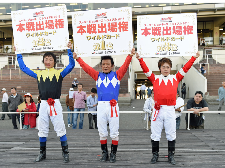 昨年まで実施されていたワールドスーパージョッキーズシリーズが、今年は『2015ワールドオールスタージョッキーズ』として8月29日・30日に札幌競馬場で行われる。地方競馬からは2人が出場するが、そのうち1人は北海道所属騎手が選定されるため、もう1枠をめぐり全国のトップジョッキーたちの戦いが繰り広げられる。そのスーパージョッキーズトライアル(SJT)に先がけて、本戦への出場をかけた『SJTワイルドカード』が今年は金沢競馬場で開催。2レースのポイント制で上位3名が本戦への出場権を手にすることができる。出場騎手11名のうち、過去にワールドスーパージョッキーズシリーズに出場経験のある騎手が4名、また昨年の全国リーディングトップの田中学騎手(兵庫)など、ワイルドカードといえども全国の名だたる騎手が集結した。