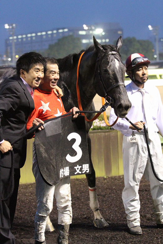 そんな初出場騎手たちの活躍にも期待していたのだが、第1戦シルバーサドル賞(1200メートル)の主役は、メンバー中、最多出場で最年長の的場文男騎手(大井)だった。