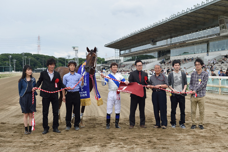 エスワンプリンスは2着から3馬身離れての3着。昨年末の中島記念(3着)のあとノドの手術をして、休養明けの地元戦を叩いて(4着)臨んだ一戦。「もうひと叩き足りない感じだったので、一応は格好のつくレースができたと思います。次は地元の吉野ヶ里記念(7月26日)を予定しています」と手島勝利調教師。