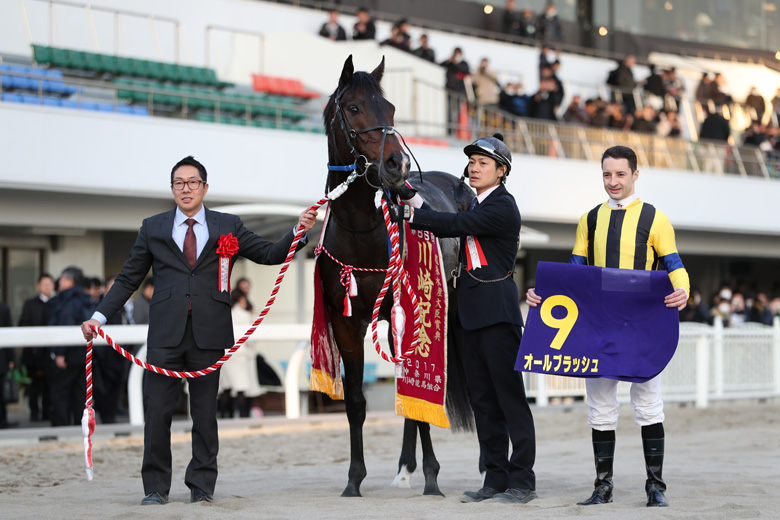 オールブラッシュの後ろにはミツバやケイティブレイブ、コスモカナディアンなどが追走していたが、オールブラッシュの逃げは変わらず。「最後まで反応はとてもよかったし、ゴールまで止まらなかったので楽に勝つことができました。逃げるのが大好きな馬なので完璧なレースでしたね。大きなステップでしたが能力はあるので自信を持って乗りました」(ルメール騎手)。