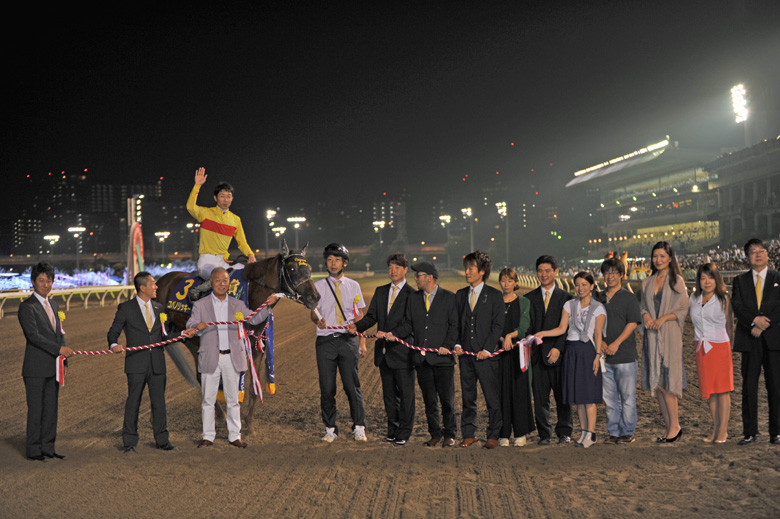 今回は前走からプラス15キロ、547キロという過去最高体重で登場したコパノリッキー。それが影響したのか、パドック周回の間にも少しずつオッズが上がって最終的には単勝6.6倍。「僕が信頼されていなかったんでしょう(笑)」とマイクパフォーマンスで場内を沸かせた武豊騎手はさすがだったが、「馬体重を見て少し心配になりました。でも勝てたということはいい馬体だったということでしょう」と村山調教師の不安も杞憂に終わったようだった。