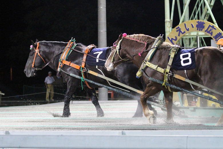 今年の帯広は春先から長雨が続いた。農業の盛んな十勝では収穫が心配だが、馬にとっては比較的過ごしやすい夏となった。レース直前の1週間ほどはぐっと気温が上がり、北海道にもやっと遅い夏が訪れていた。帯広一市開催10年目を迎えたばんえい競馬の真夏の大一番、ばんえいグランプリはファン投票の上位馬と賞金上位馬によるレース。ファン投票1位のセンゴクエースはまだ4歳ということで大事をとり不出走だが、10位までの馬から9頭が出走するドリームレースとなった。ばんえい競馬の売上げ増とともに、優勝賞金も昨年の150万から200万に増額された。