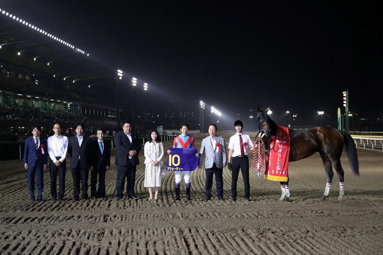 アウォーディーは、管理する松永幹夫調教師が、母ヘヴンリーロマンスの現役時に主戦騎手だったというゆかりの血統。半妹にはアムールブリエ、半弟にはラニがいる。ダートで負けなしというのは何よりも魅力だ。