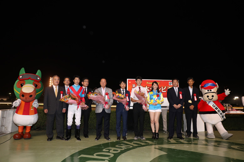 11月3日(祝・木)に川崎競馬場で行われるJBC。そこに向けたRoad to JBC日本テレビ盃JpnⅡが船橋競馬場で行われた。1着馬にはJBCクラシックJpnⅠへの優先出走権が与えられる。川崎競馬場のマスコットキャラクター・カツマルくんもPRで来場し、JBCにちなんだイベントも盛りだくさんで、すでにJBC色たっぷりだ。勝ったのは、武豊騎手がエスコートした上がり馬アウォーディー。芝では4勝を挙げているが、昨年の秋からダートに転向。重賞初挑戦となったシリウスステークスGⅢを完勝すると、名古屋大賞典JpnⅢ、アンタレスステークスGⅢと重賞3連勝中。この日本テレビ盃JpnⅡでも単勝1.8倍と断然の人気を集め、ダート界の新星がどんな走りをするのか注目を集めていた。