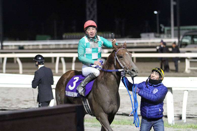 4コーナーでペースをあげました。後ろは誰も見えなかった。ちょっとスタンドに驚いたので気合を入れたけれど、その必要もない強さだった。競馬が上手で、ポテンシャルが高い馬。次走が楽しみです。