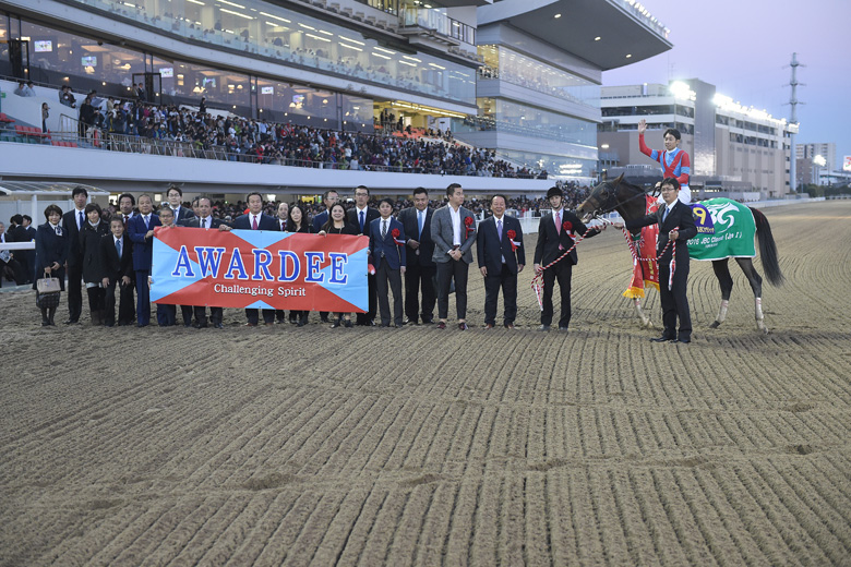 今日は日本のダート界でいちばん強い馬たちが集まっていましたから、そのなかでいいレースができました。早めに抜け出すと走るのをやめる面があるところだけは心配していましたが、走りはいつものアウォーディーらしくて、安心して見ていられましたね。ジョッキーがうまく乗ってくれました。