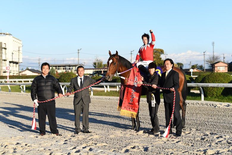 スピードの持続力が売りのタイプ。馬場やコースを含めて笠松は相性が良くて走りがいいね。しっかり乗り込んであったし鉄砲駆けもきくタイプで状態は良かった。次走は12月28日の兵庫ゴールドトロフィーを目標にしています。