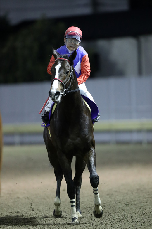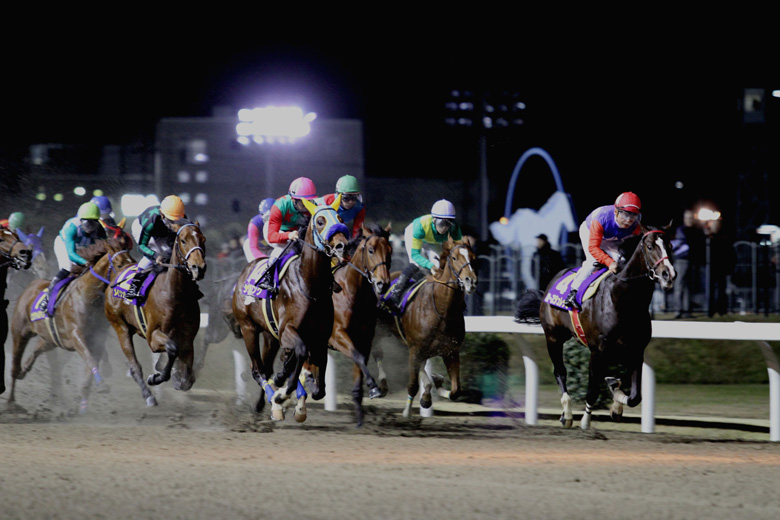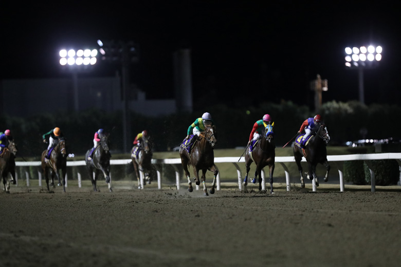 朝方の雨の影響で、1レースから不良馬場で行われていた川崎競馬場。結局、夜になっても馬場コンディションは変わらず、初冬らしい寒さの中、川崎競馬今年最後のビッグレース、全日本2歳優駿JpnⅠを迎えた。今年は、北海道から大挙6頭が参戦。兵庫ジュニアグランプリJpnⅡを制したローズジュレップや同3着のバリスコア、北海道2歳優駿JpnⅢの2~4着馬など、ダートグレードレースで上位に入った馬たちが名を連ねており、北海道勢対JRA勢の構図となっていた。しかし、混戦模様の牡馬たちをよそに、単勝2.0倍の1番人気に支持されたのは、エーデルワイス賞JpnⅢの勝ち馬、紅一点のリエノテソーロだった。