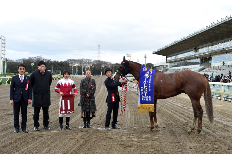 引退された領家先生からいい馬を引き継がせていただきましたが、園田の馬場も合っていると思っていましたし、なんとかひとつ重賞を勝ててよかったです。このあとは根岸ステークス、フェブラリーステークスの予定にしますが、このオーナー(高知在住)の馬ですから、黒船賞も大きな目標になります。