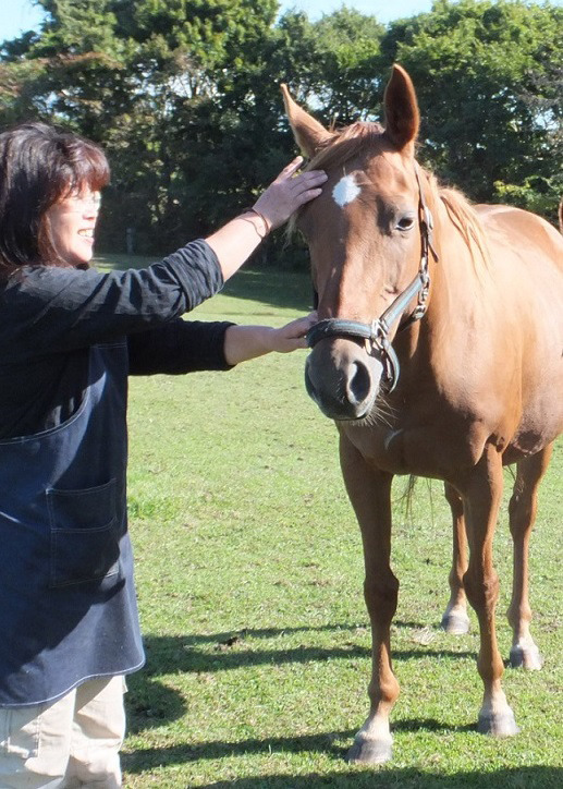 いつもおじゃまさせて頂くと、智美さんが「ばなこ~!」と放牧地の遠くにいるカネショウバナナを呼んで下さいます。私も感慨深く、「バナナちゃん」と近づいていこうとしても、ツンデレ具合を発揮して、青草を食み続けている何気ない姿も幸せな光景。