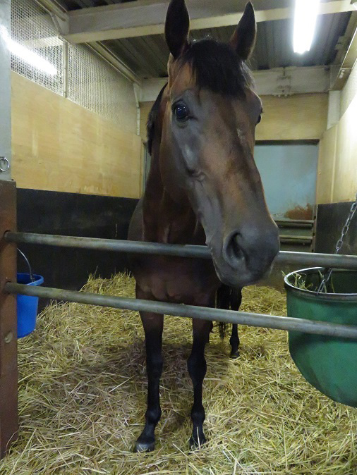 7月14日に大井競馬場の誘導馬厩舎にお引越ししました。長きに渡って苦楽を共にしてきた小林大樹厩務員に引かれて、同じ敷地内とは言え場所は変わるので最初は少々気持ちを高めていましたが、1日経つとリラックして穏やかな表情に。ただ、威圧感はたっぷりで、これが王者の風格なのかと……。