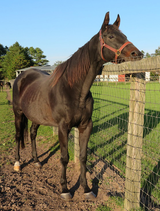 若い頃は気性が非常にきつかったため、合わない馬が近くに来ると怒り、体は小さくても大きな馬に対して果敢に蹴り合いをするほどだったそうです。今は年を重ねたので、若い繁殖牝馬たちに遠慮をし、放牧地から馬房に帰るときも最後まで後ろで大人しく待っているそう。