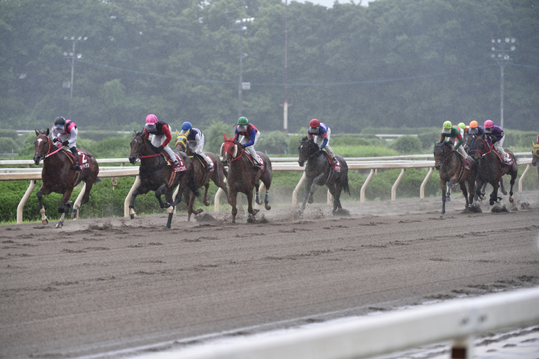 雨が降る重馬場の中、好発を決めた杉浦健太騎手の1番人気マイタイザンが大方の予想通り、ハナを奪う。しかし、これに真っ向勝負を挑んだのが、2番人気エイシンニシパ。鞍上の吉村智洋騎手が「ファンはマイタイザンが一番強いと思ってたようだけど、僕は自分の馬が一番強いと思ってたから、この乗り方しか考えてなかった」と言うように、出ムチを入れて加速。1周目の3コーナーでは、マイタイザンの外の2番手でぴったりマークした。
