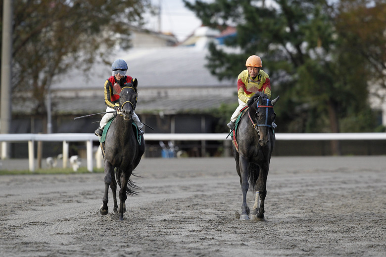 そこから先は、普段は一緒にトレーニングを積んでいる2頭だけに、ジョッキーの判断が問われるところ。バーバリアンは「並ばれそうになると頑張る」(金田調教師)タイプで、畑中騎手はそれを狙って最後の追い出しを一呼吸待ち、ヴィーナスアローは田知騎手が馬体を併せないように進路を馬場の中央方向へと導いた。2頭が横に広がっての一騎打ちとなり、ゴール地点ではヴィーナスアローのほうがクビ差だけ先着していた。