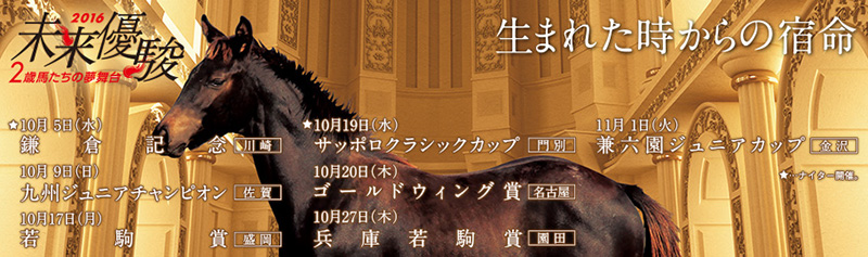 毎年秋に行われる各地の2歳主要競走(計7レース)を短期集中施行するシリーズ(2008年創設)。2016年は10月5日から、11月1日まで、未来を期待される優駿たちの戦いが繰り広げられます。3歳馬によるダービーウイーク同様、各地の主要競走が短期間で楽しめる贅沢感や、先々への期待感を醸成できることが、このシリーズ最大の魅力。また、11月以降のダートグレード競走(11/1・門別競馬場・北海道2歳優駿、11/23・園田競馬場・兵庫ジュニアグランプリ、 12/14・川崎競馬場・全日本2歳優駿)への期待感を高めることも期待されます。