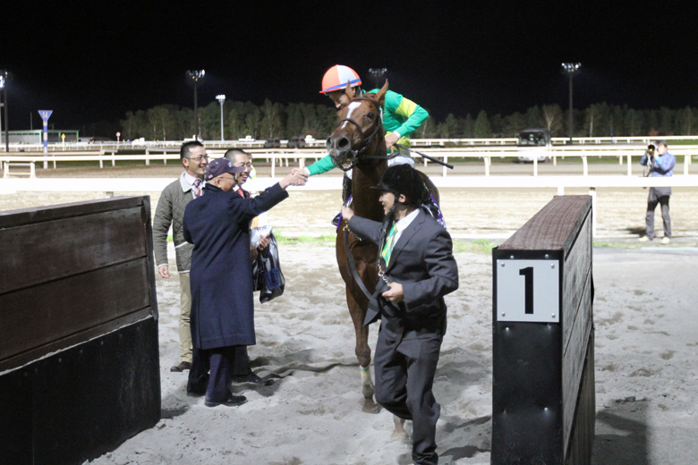 昨年のリベンジだけでなく、中央・地方を通じての重賞初制覇を門別競馬場で果たした武井調教師は、「思っていた通りのレースができました」と喜びを噛みしめる。今後はオーナーと話し合って、全日本2歳優駿JpnⅠ、阪神ジュベナイルフィリーズGⅠのいずれかを目指すとのことだが、これも芝・ダートを問わない“二刀流”だからこその悩みと言えよう。