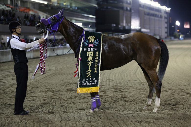 なお、この関東オークスJpnⅡはグランダム・ジャパン3歳シーズンの最終戦。ここへの出走はなかったが、船橋のクラトイトイトイが第2戦の若草賞と第4戦の東海クイーンカップを制して合計39ポイントを獲得し、総合優勝を飾った。「素直にうれしいです。まだ気性が幼いところはありますが、真面目で一生懸命に走る馬で、もっと力はついてくると思います」と矢野義幸調教師。