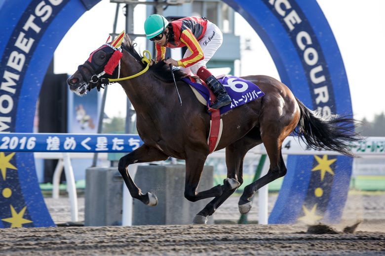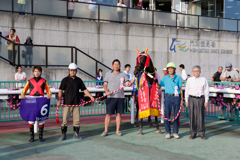 優勝したストーンリバーは、単勝オッズ24.8倍の8番人気馬。5月31日にデビューし、2戦目の「未勝利(1500m)」を9馬身差の圧勝で初勝利。そして2週前に行われた「アタックチャレンジ(1600m)」をアタマ差で制し、この大一番へと駒を進めてきた。今回の勝利を含めた3勝はすべて内回りコースで挙げたもので、そのレースセンスの良さと器用さが存分に活かされた勝利だったといえるだろう。管理する堂山芳則調教師は、2010年のモエレフウウンジ以来、2度目の「ブリーダーズゴールドジュニアカップ」優勝となった。