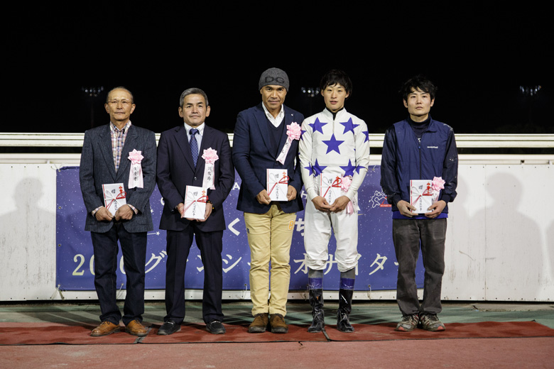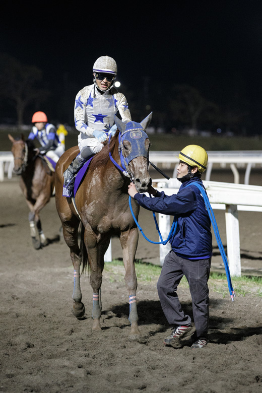これまでは詰めの甘いレースがつづいたのですが、今日はよく頑張ってくれましたね。まだ抜け出してから伸びきれない歯がゆい面も残っていますが、その辺はこれからクリアしていってくれるでしょう。このあとはエーデルワイス賞に行くか、川崎のローレル賞に遠征するか、まだ迷っています。