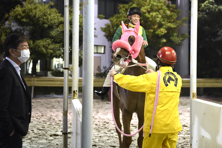 いくら短距離が得意とは言え、900メートルは独特なのでどうだろうと思って見ていましたが、何も心配することはなかったですね。思っていた以上の強さでした。次の習志野きらっとスプリントの条件(船橋1000メートル)の方が走りやすいと思います。短距離戦はこの馬と夢を持ってやっていきたいですね。