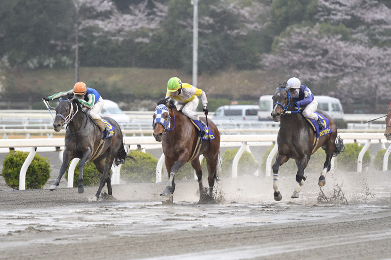例年より早く開花した高知市の桜。黒船賞JpnⅢ当日には満開となり、高知競馬場の桜も美しく咲き誇っていた。しかし、この日はお昼前から冷たい雨が降り始め、寒の戻りという一日。前日の降雨の影響もあり、馬場状態は水の浮いた不良となっていた。今回で20回目を迎えた黒船賞JpnⅢ。第1回のリバーセキトバ(高知)以降、地方馬の勝利は一度もなかった。しかし今回、兵庫のエイシンヴァラーがついにJRA勢の壁を打ち破った。しかも、11頭中9番人気、単勝234.3倍での優勝と、まさに大金星となった。