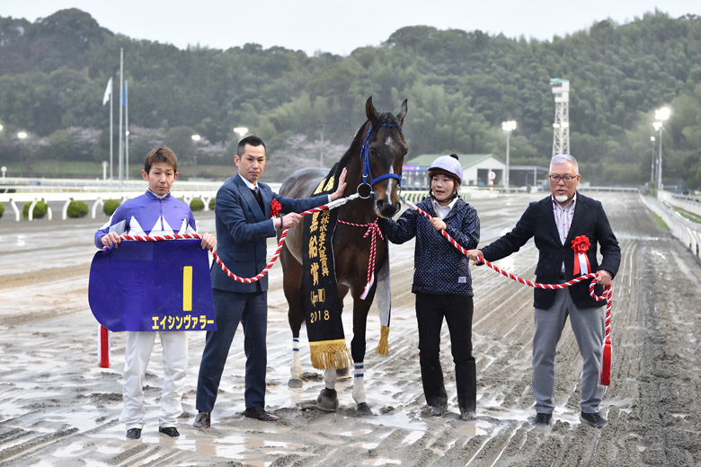 エイシンヴァラーとともに戻ってきた下原理騎手は「よっしゃー!!」と大きな声をあげ、陣営と喜びを分かちあった。「こんなガッツポーズをしたのは何年ぶりだろう」と大興奮の様子。新子雅司調教師にとっては2014年のかきつばた記念JpnⅢをタガノジンガロで制して以来、2度目のダートグレード制覇。「初めての時は夢を見ている気持ちでしたが、今回は、泣きそうになりました」と感慨深げだった。