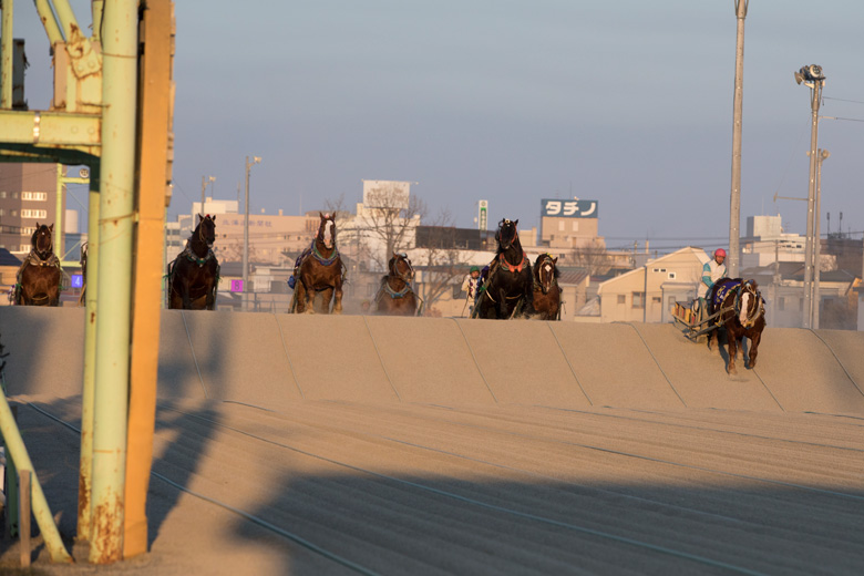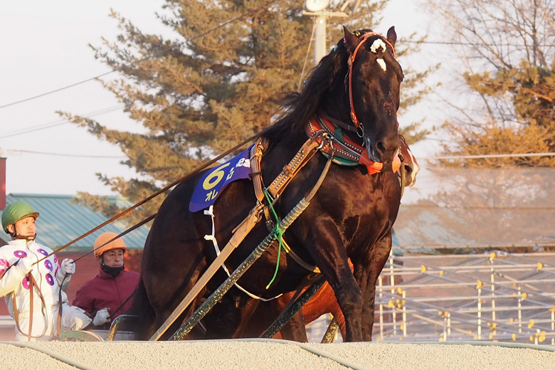 帯広単独開催の新生ばんえい競馬となって10年目。シーズン最後の大一番、ばんえい記念も50回目の区切りを迎えた。最高気温が10度を上回る好天となって馬場水分は0.9%。砂煙が上がるほど乾いた馬場での争いとなった。今シーズンここまで重賞3勝を挙げ、ばんえい記念連覇を狙うオレノココロが単勝1.7倍で断然人気。2番人気は、帯広記念をトップハンデで制し、今シーズン重賞3勝、2着3回ともっとも勢いを感じさせるコウシュハウンカイ。さらにニュータカラコマ、サクラリュウ、一昨年の勝ち馬フジダイビクトリーまでが単勝一桁台。専門紙の印を見てもこの5頭の争いという様相だった。
