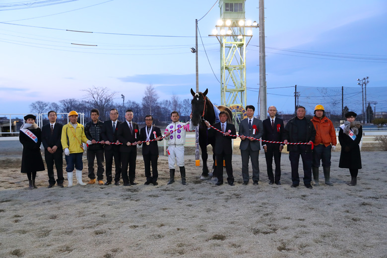 昨年の勝ちタイムは4分7秒6(馬場水分0.6%)で、オレノココロが2着のキタノタイショウに24秒もの差をつける独走となったが、今回は勝ちタイム3分59秒3(同0.9%)で、5着のソウクンボーイまで7秒4差という、1トンの重量を考えれば接戦となった。これについて鈴木騎手は、「前半が去年よりスローになって道中の追走が楽になり、そのぶん、ほかの馬も比較的楽に障害を越えられたんだと思います」とのこと。道中の駆け引きや仕掛けのタイミングで結果が大きく変わるのが、ばんえい競馬の難しさでもあり、面白さでもある。それが1トンのばんえい記念になればなおさらだ。