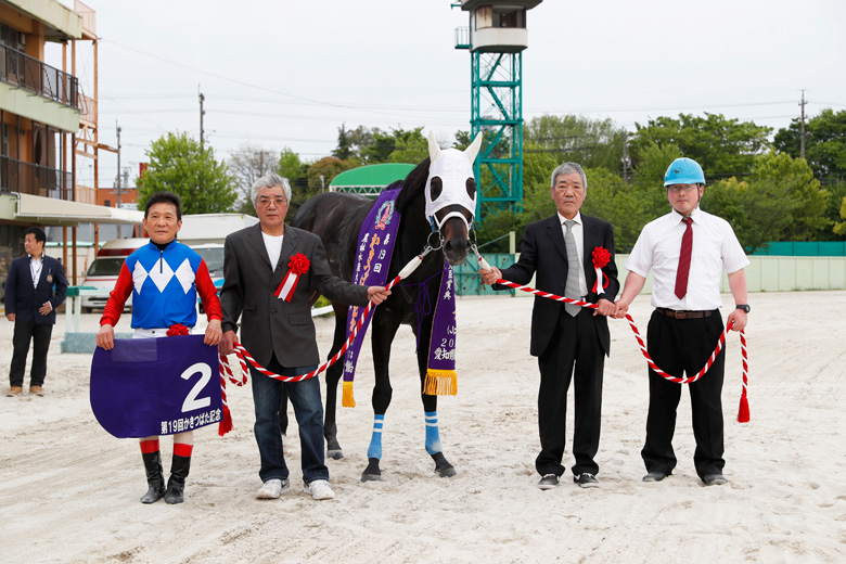 「よかった。黒船賞のときは何もできなかったからね」と、川原正一騎手は満足そうな笑顔。ゴール後は快走の勢いのまま、馬場をもう1周してウイニングラン。3年前に優勝したタガノジンガロ以来となる兵庫所属の人馬には、大きな拍手と声援が贈られた。