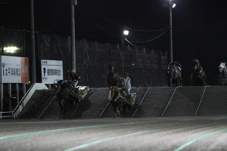 好スタートのコウシュハウンカイが先行してレースを引っ張り、ニュータカラコマとオレノココロ、キサラキクをはじめ各馬が先手を奪いに行く。繰り上がり出走となった竹ケ原茉耶騎手のシンザンボーイが少し置かれた格好。2障害手前までは53秒という、ばんえいグランプリにしては速い流れだった。