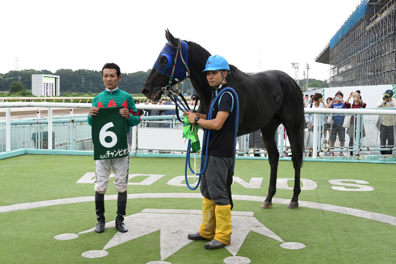 対して、上位に入ったのは外枠の各馬。逃げる2頭を右斜め前に見る形でレースを進めた山口勲騎手(佐賀)が4コーナー先頭から押し切った。過去に5回も総合3位以内に入っていることは他の出場騎手も知っていたようで、後検量を終えたところで「さすがですね」と冷やかす声が飛び交った。