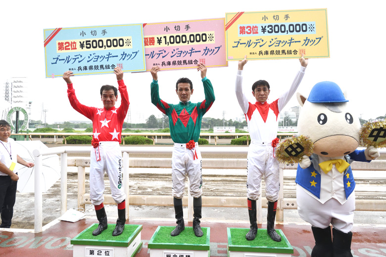 3位争いは、1、11、6着の山口騎手と、9、2、5着の赤岡騎手が29ポイントで並んだ。ゴールデンジョッキーカップの規定は、同点の場合は最上位着順を記録した騎手が上位。その結果、3位は2年連続で山口騎手となった。