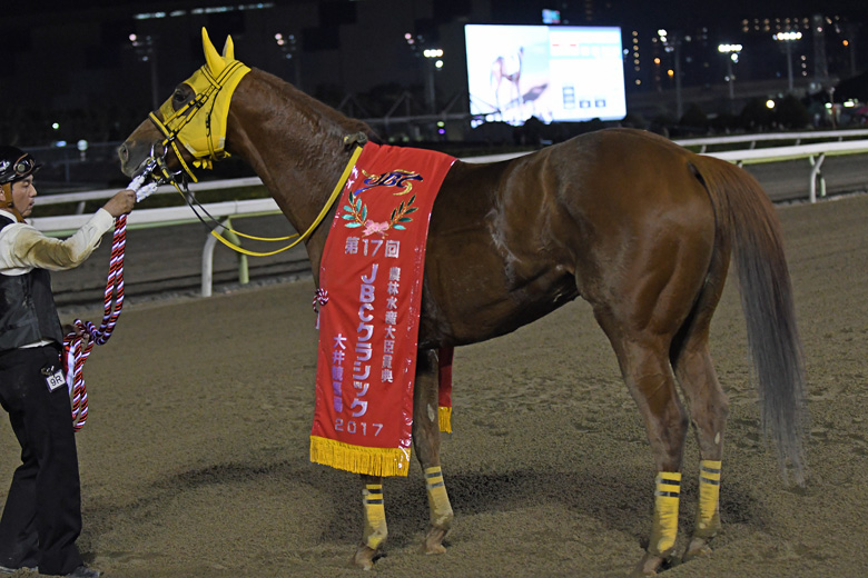 最後の直線に入ると、逃げるオールブラッシュに代わって、ミツバとケイティブレイブが先頭に。アウォーディーはインコースから差を詰めてきたが、並びかけたところから伸びあぐねる走りになった。そこに勢いよく加わってきたのはサウンドトゥルー。ミツバとケイティブレイブの追い比べを横目に、1馬身差をつけてJBC初勝利を飾った。