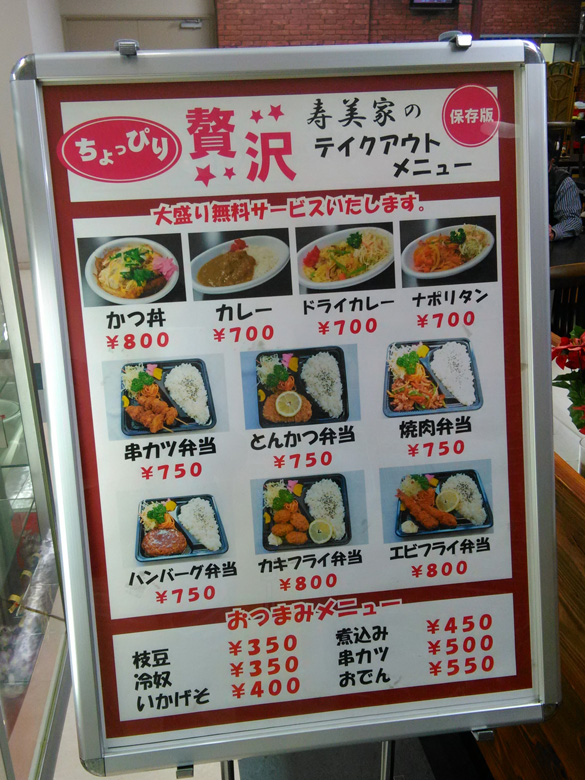 私が過去に船橋競馬場へ行った回数は、もしかしたら3ケタを超えるかもと思えるくらいなのですが、5階の特別観覧席にある「寿美家」さんに入ったことはゼロ。私は基本的に下のフロアをウロつくのが行動パターンで、しかも船橋の場合は最終レース後に食事に行ったり飲みに行ったりということが多々。そうなると、場内の飲食店を利用しようという気分にはなかなかならないんですよね。そういうわけで「寿美家」さんが2階にもあったときも利用したことがありませんでした。そうしたら、いつのまにか2階のお店が耐震補強工事の影響で閉店に。