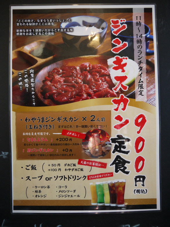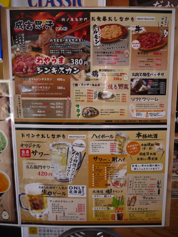 「肉の五右衛門」 ジンギスカン各種(わやうまジンギスカン380円など)