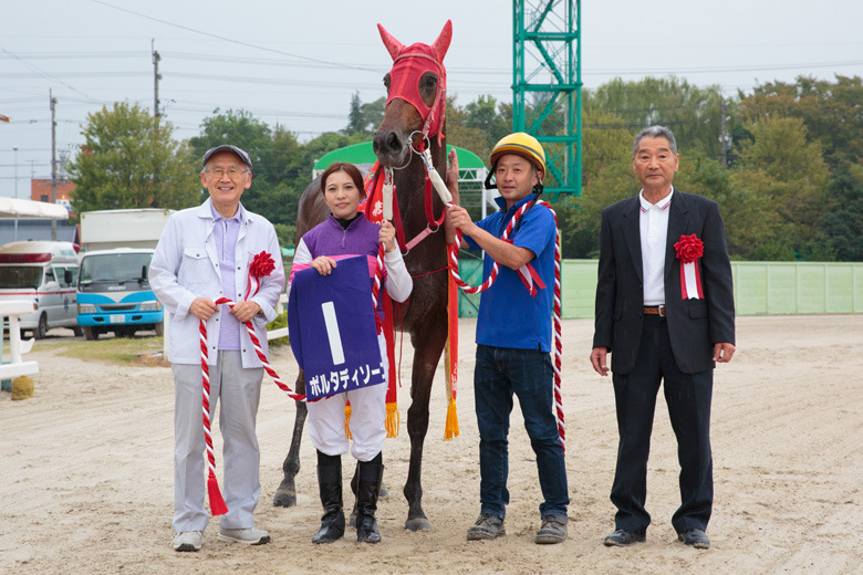 その一方で、先頭争いは白熱。ポルタディソーニは直線の入口で先頭に立ち、その内側からブレイヴコールが差を詰めてきた。しかし遠目から見ても、勢いが感じられたのはポルタディソーニのほう。宮下瞳騎手への大声援とともに、ポルタディソーニが半馬身の差をつけて勝利を飾った。