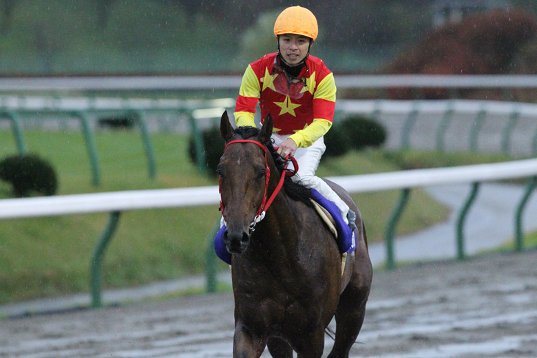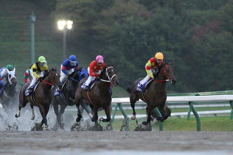 キングジャガーは「折り合いがつくので、番手からの競馬もできる」(板垣吉則調教師)タイプではあるが、今季4月からの4戦はすべて逃げての競馬。「楽な競馬にはならない」という覚悟は、調教師にも騎手にもあったようだが、キングジャガーを徹底マークに出たのは2番人気のワイルドソング。前半レースから速いタイムを連発する不良馬場で、ほとんど緩むことのないラップタイムを刻んでいく。さすがに最後の直線は「アゴが上がって苦しがったが、我慢してくれた」(板垣調教師)と、交わせそうで交わさせないのがキングジャガーの本領。ワイルドソングを最後の最後で突き放し、逆に1馬身半離してゴールへ逃げ込んだ。