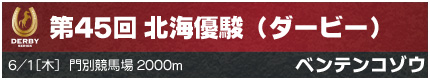 北斗盃で2馬身差の2着まで迫ったストーンリバーが逆転の期待を背負って人気を二分。しかし最終的には、ベンテンコゾウの単勝が2.3倍に対し、ストーンリバーは3.1倍。ネット投票が売上全体の半分をはるかに超える時代となっての人気とも思われ、門別競馬場のファンや関係者はストーンリバーのみならず地元馬を推す声も少なくなかった。1頭が競走除外となって、しかしベンテンコゾウは、地元馬12頭を難なく一蹴して見せた。