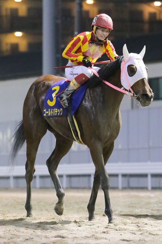 ゴールドパテックは3~4コーナーで外に出して進出していくと、直線ではわずかに先頭に立っていたストロングハートをジワジワと抜き去った。「3コーナーでは苦しいかなという感じの手応えでしたが、スタミナのある馬で、最後までバテない走りをしてくれました」