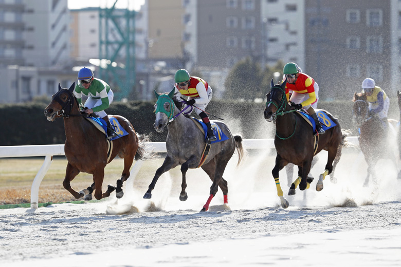 「春は名のみの風の寒さや」というのは、日本の唱歌『早春賦』の歌い出し。この日の名古屋競馬場は、まさにそういう日和だった。青空は透きとおっているものの空気は冷たく、そして強い風が4コーナーからゴール方向に吹いていた。馬場状態はレースが行われていないときでも砂塵が舞い上がる状況で、少頭数でも人気の先行馬が総崩れという結果がある一方で、極端なスローペースになるレースもあった。