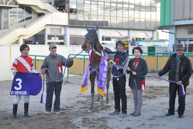 グラマシーがニードアフレンドを交わして先頭に立ったが、「抜け出してから嫌気を見せる」と岡部誠騎手。ダンストンレガーメがじわじわと詰め寄り、クビ差抜け出したところがゴールだった。村上騎手と岡部騎手は同期のライバル、村上騎手の笑顔にはいつも以上の満足感があった。