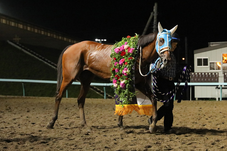 正直、ここに入ってどうなのかなと思っていましたが、先行できましたし、砂をかぶらないように進めていったら、勝負どころで『あれ?行けるかな?』という手応えがありました。能力はあっても気難しい面があるので、そこが今後の課題ですね。僕自身も門別では初勝利だと思うので、とてもうれしいです。