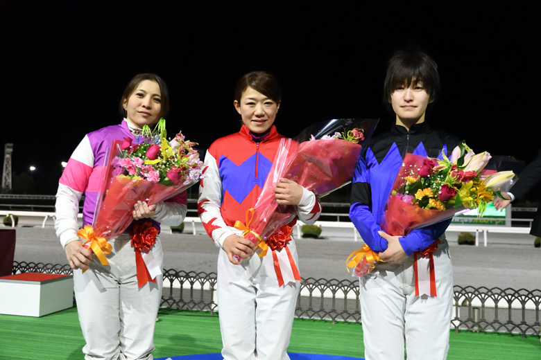 残る最終ラウンドは2週間後の佐賀競馬場。別府騎手は盛岡、名古屋、高知と積み重ねたポイントの合計でも1位となっているが、「佐賀の最後のレースはポイントが倍ですからね」と2年連続の総合優勝に向けて気合十分。「でも去年は、私がその制度のおかげで優勝できたんですけれど」と苦笑いしていた。当然ほかの3名の騎手にも、そのことは頭に入っていることだろう。