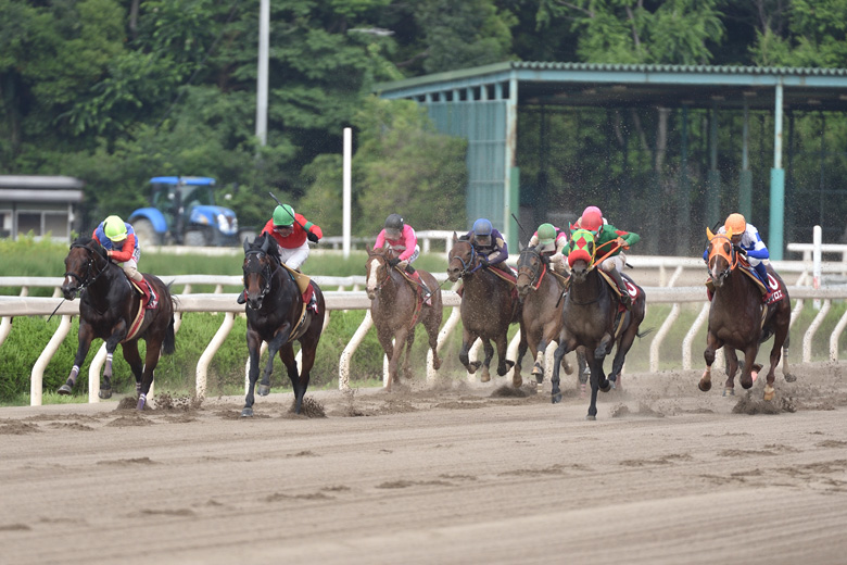 スーパースプリントシリーズ(SSS)のトライアルラウンドは、そのほとんどが梅雨の時期と重なっているため、例年雨や道悪の印象が強い。しかし今年の園田FCスプリントは梅雨の合間で時折晴れ間も覗き、馬場は稍重というまずまずのコンディションで行われた。820メートル、わずか50秒足らずという争いでも出入りの激しい競馬となった。