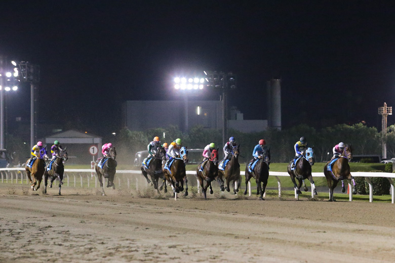 レース前、2戦とも1枠を引いた中越琉世騎手(川崎)は「第2戦は先行できそうなので内枠から積極的にいきたい」と話していた。そんな思惑通り、第2戦は中越騎手がペースを握った。2番手には、佐賀での期間限定騎乗から帰って来たばかりの岡村健司騎手(船橋)がつけ、外の3番手に2番人気の伴騎手、その内に野中騎手が続いた。1番人気の臼井騎手は中団の後ろでレースを進めていた。