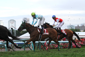 4コーナー手前で馬体を併せて先頭に立ったのは、内が1番人気の武豊騎手で、外が2番人気のジョアン・モレイラ騎手(ブラジル)。直線一杯を使っての追い比べは、写真判定の結果、モレイラ騎手がハナ差、先着していた。実は初日の2戦を終えて最下位だったモレイラ騎手だったが、勝っていることを知ると笑顔が弾けた。