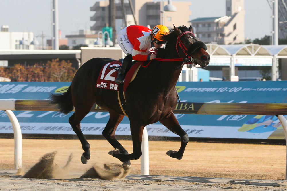 第1戦のマイスターチャレンジは、1番人気に推されていた山本聡哉騎手(岩手)のシカゴジャズが、2着馬に8馬身差をつける圧勝。出鞭を入れて積極的に先手を取っていくと、そのまま後続馬たちを突き放した。