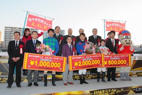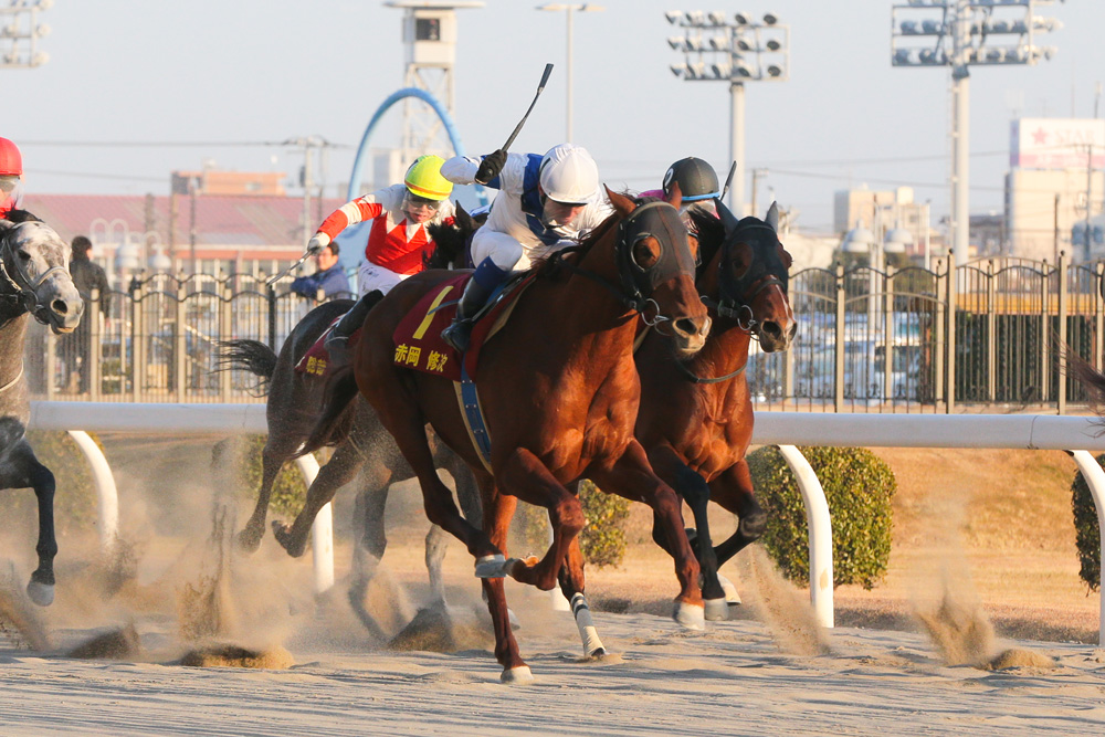 2戦目のヴィクトリーチャレンジは、昨年、距離を2100メートルから1600メートルに短縮。勝ったのは、7番人気タニノホウザンとコンビを組んだ赤岡修次騎手(高知)。道中は中団内めで進めていき、最後の直線で一気に外へ持ち出すと、逃げ粘っていた戸崎圭太騎手(JRA)の10番人気ケイティーテンリウをクビ差交わしたところがゴールだった。「よかった、完璧!」と満面の笑みを浮かべて引き上げてきた赤岡騎手。
