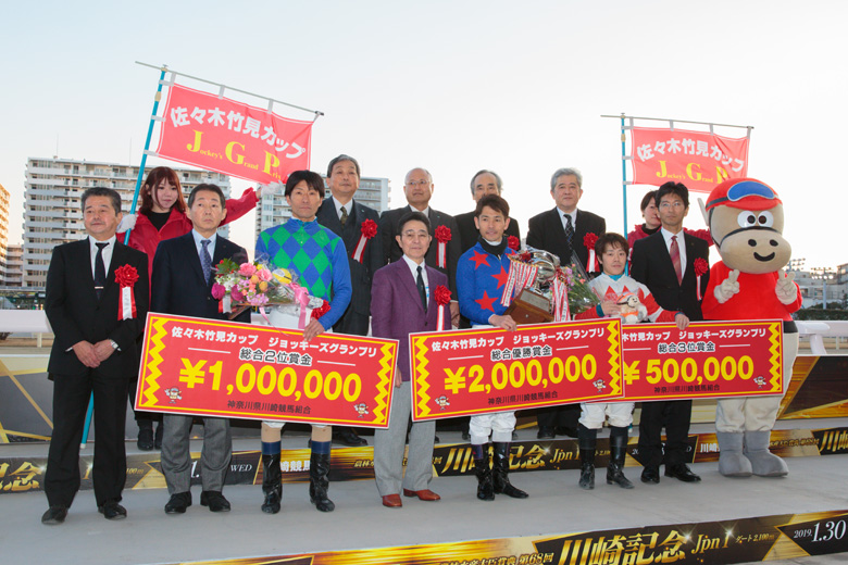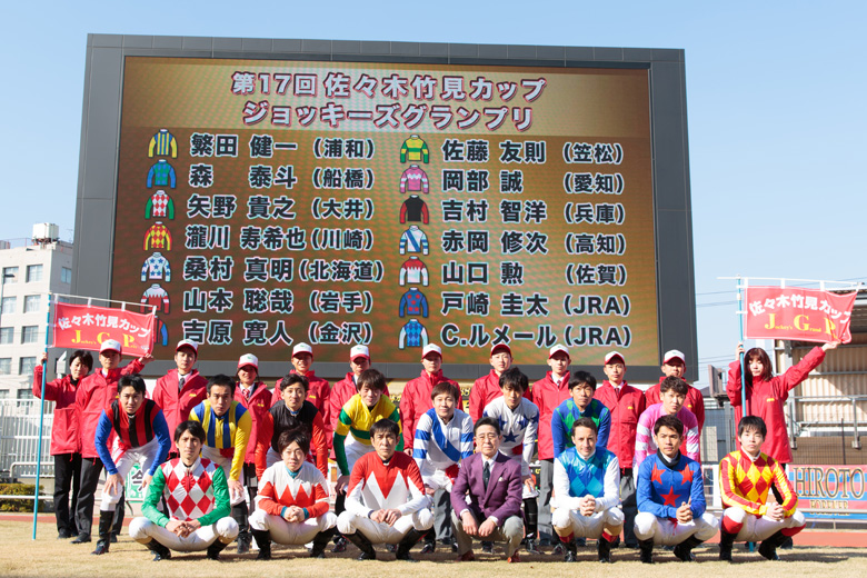 そんな川崎競馬場の至宝を讃えるべく、引退の翌年2002年から始まったのが佐々木竹見カップジョッキーズグランプリ。毎年、地方各地と中央のトップジョッキーたちが集まり腕を競い合う。今回の初出場は吉村智洋騎手(兵庫)と瀧川寿希也騎手(川崎)の2名。
